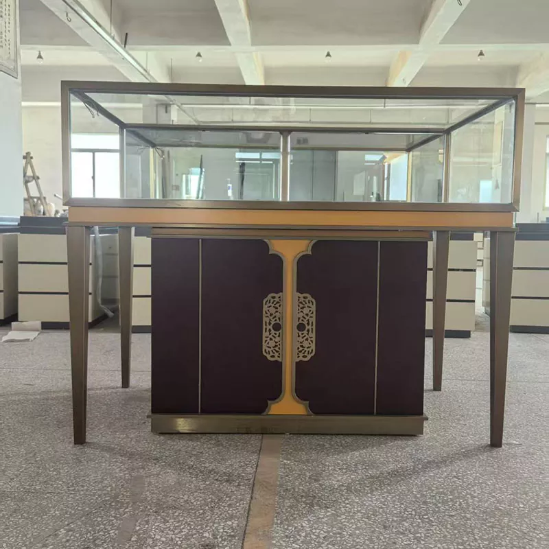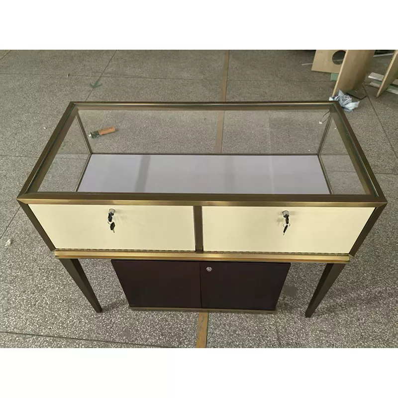 Các quầy hàng hiệu trong trung tâm mua sắm, chẳng hạn như quầy bán đồng hồ và kính, trông đặc biệt tinh tế với chiếc bàn này.